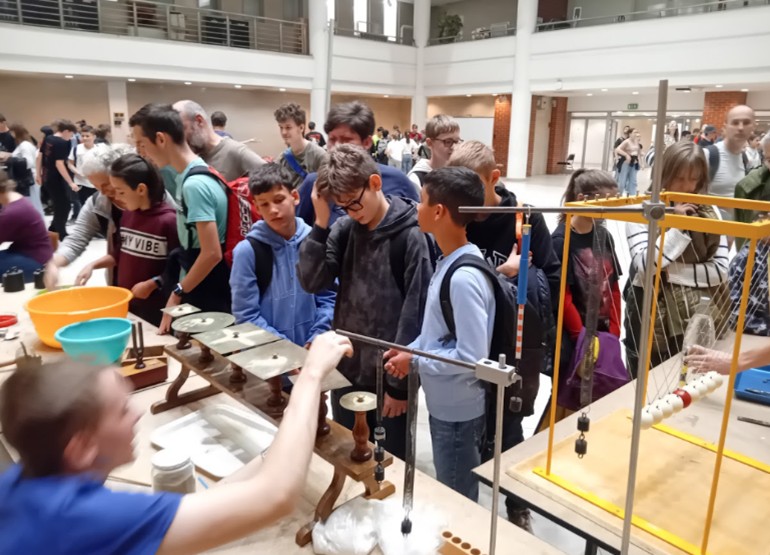 A hetedik évfolyammal szeptember 26-án – Erika néni és Gábor bácsi kíséretével – az Eötvös Lóránt Tudományegyetemet látogattuk meg, ahol az intézmény diákjai mutattak nekünk érdekesebbnél érdekesebb kísérleteket, amelyekből néhányat mi magunk is kipróbálhattunk.