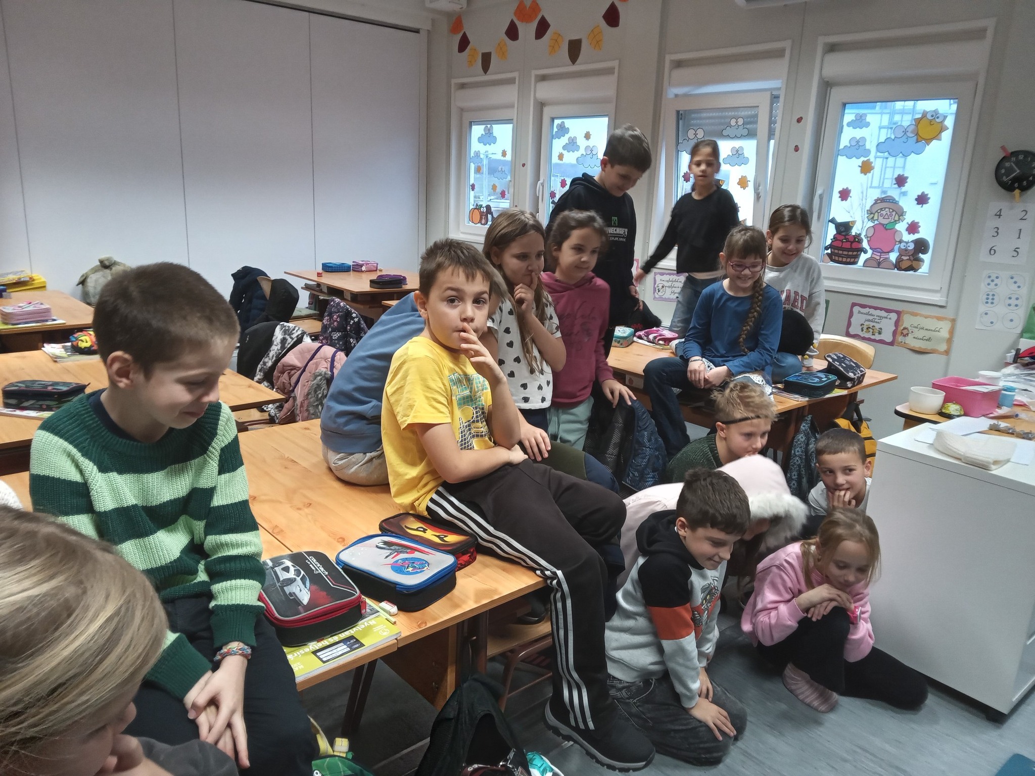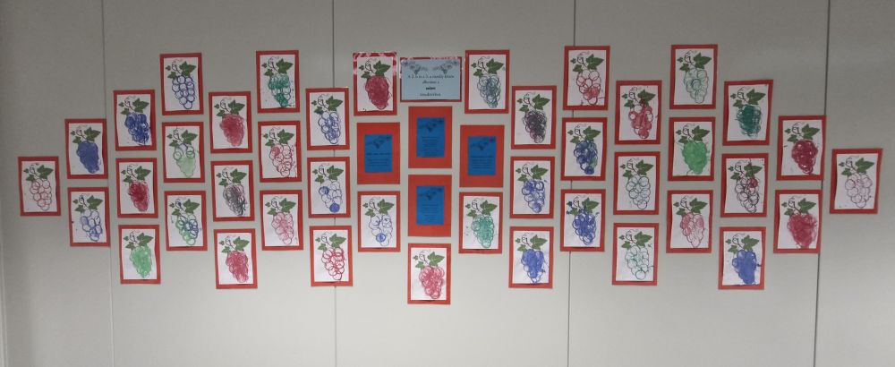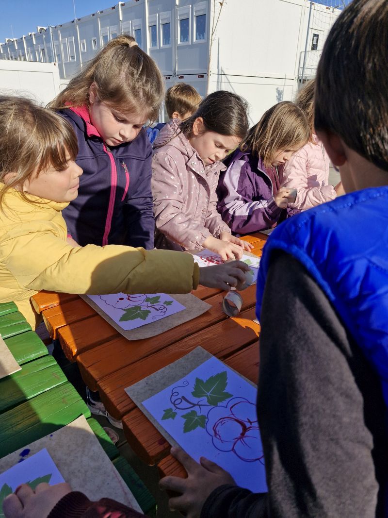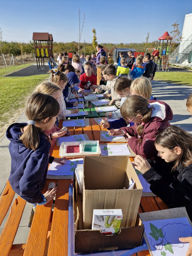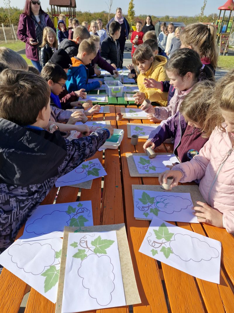 Első állomásunk 2025. október 20-án a szüret volt. Egy tartalmas és mozgalmas programon vettek részt a gyerekek. Móni nénivel népi körjátékokat játszottak, míg Edit nénivel szőlőnyomatot készíthettek a gyerekek, melyet az iskola folyosóján kiállítás formájában az egész iskola meg is tekinthet.