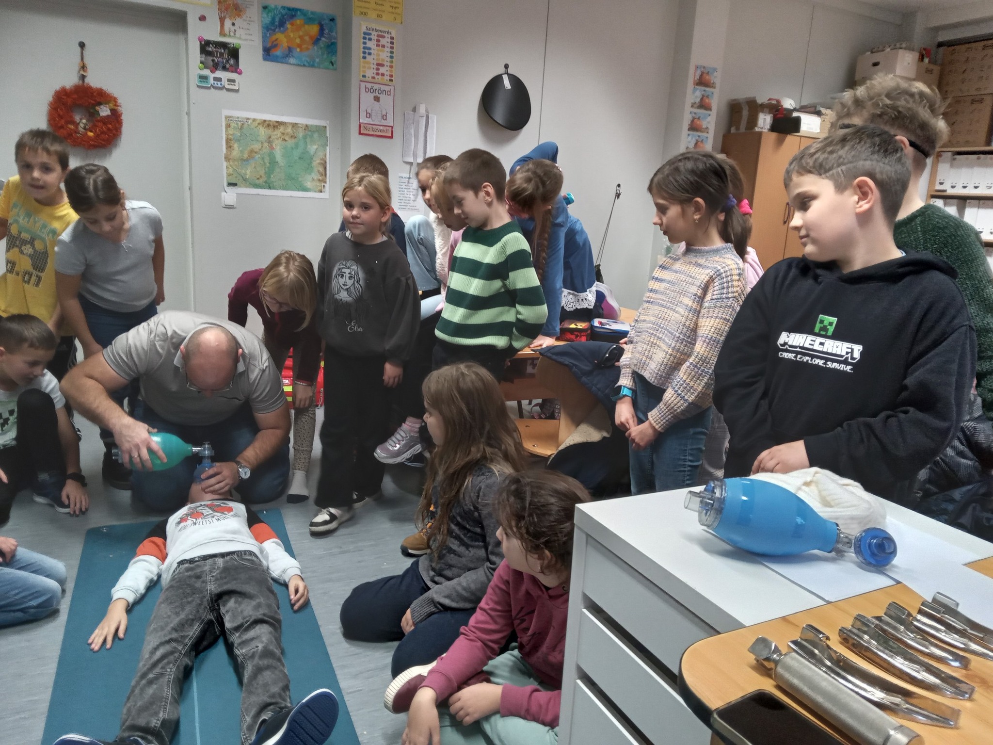 A 3.a osztály vendége Dr. Török Miklós volt, aki meghívásunkra életmenés, elsősegély témakörben tanította a kicsiknek arra, hogy a legnagyobb hiba az, ha vészhelyzetben nem mernek segíteni.