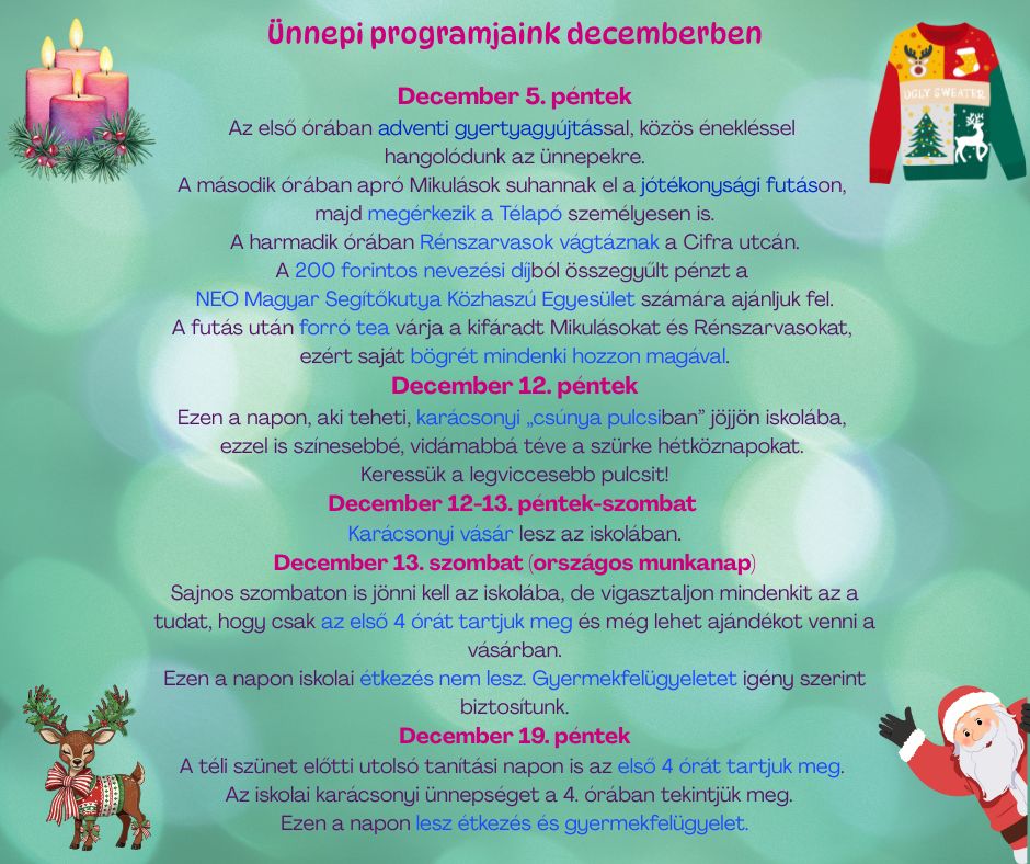 A 2. b és a 3. a osztályok a 2025-26-os tanévben egy kalendáriumi utazáson vesznek részt. A magyar néphagyomány 5 jeles állomásán állunk meg egy kicsit körülnézni. Szeretnénk a gyermekek szívéhez közelebb vinni a népi gyökereinket a zenén, táncon, mondókákon, dalokon, kézműves tevékenységeken és a gasztronómián keresztül.