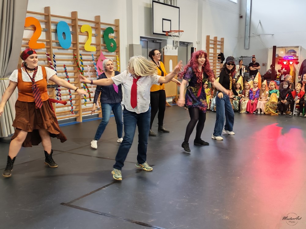 Az osztályok műsoraikkal jó korán elkezdték a próbákat, amely ezen a napon koronázta meg a farsangi bált. Kiváló előadásokat láthattunk kreatívabbnál kreatívabb jelmezekben! Az osztályok előadását követően az alsós tanítók közös táncos showja következett, amelyet a gyerekek körében jól ismert és kedvelt számra tanultak be és ezzel nagy sikert arattak a gyerekek körében! A show végén így könnyű dolguk volt táncra perdíteni a nebulókat.