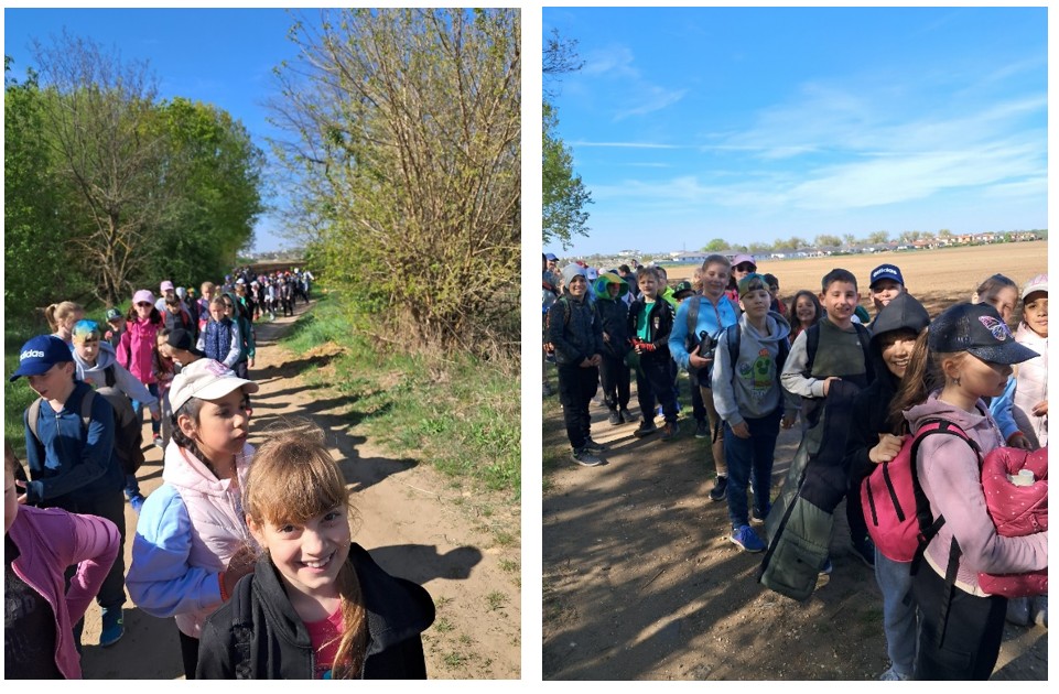 9 órakor indultunk és osztályonként, az előzetes tervek alapján haladtunk. Útközben a gyerekek megfigyelték a tavasszal nyíló virágokat, növényeket és állatokat. A helyszínen labdáztak, fociztak, frizbiztek.