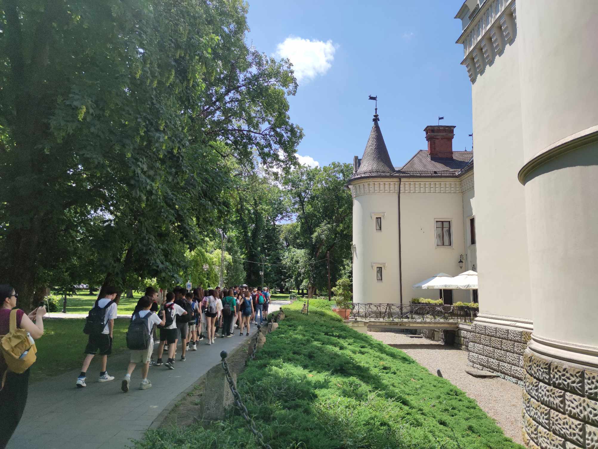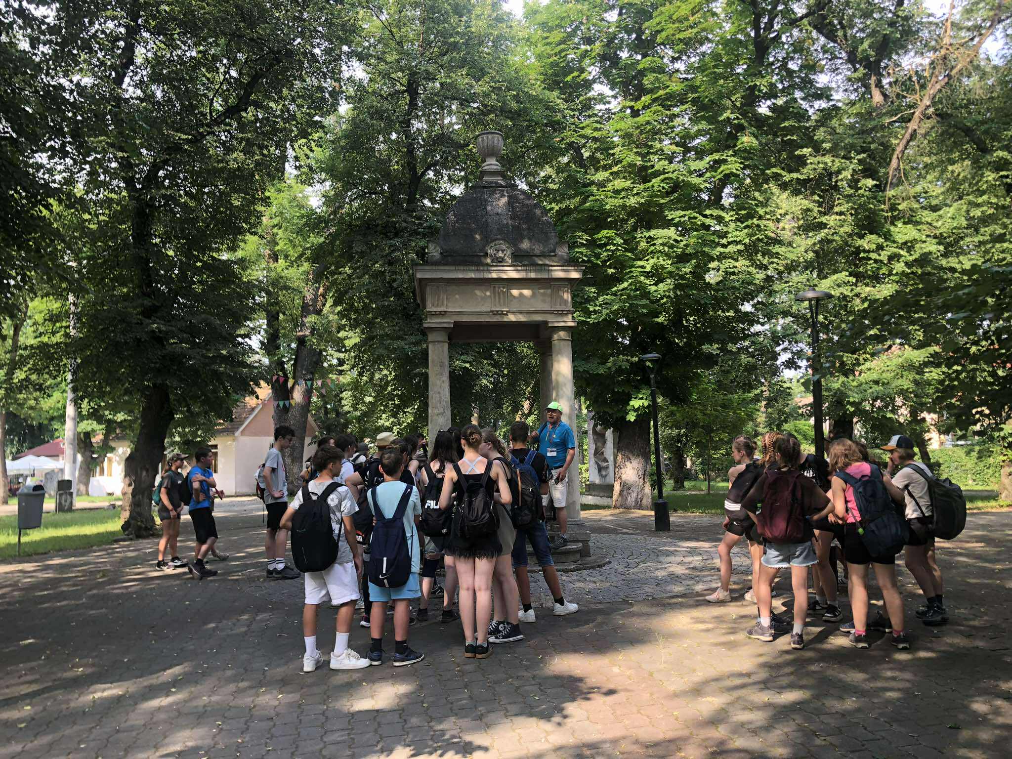 Torockó máig élő népművészetét a Néprajzi Múzeumban is megtekinthettük. Végül Nagyenyeden megnéztük a Bethlen Gábor Kollégiumot, a vártemplomot és az 1848-as emlékművet, ahol diákjaink koszorút helyeztek el. Egy gyönyörű parkon átsétálva közelítettük meg szállásunkat,ahol a hűs lombok alatt a gyerekek kipróbálták a helyi, jól felszerelt játszóteret is.