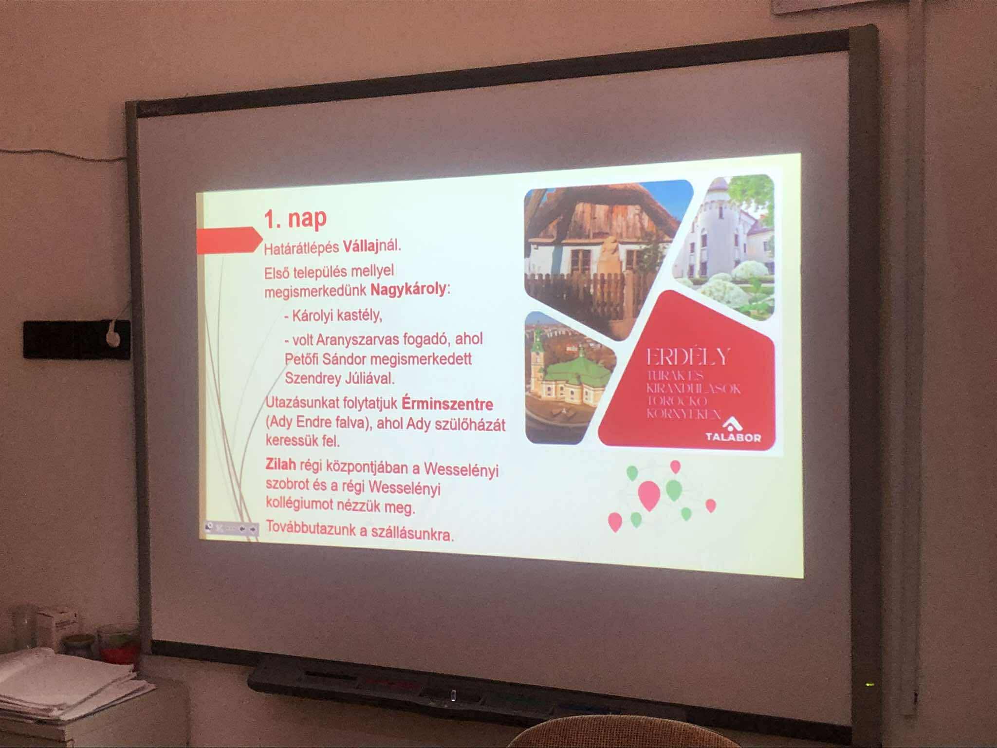A bevezető órán illetve előkészítő órán megismerkedtünk Erdély történetével a Trianoni békediktátum történelmi hátterével és következményeivel. Foglalkoztunk az anyaország határain kívül eső területekkel, különös tekintettel Torockó környékére. Természetesen az Erdélyhez kapcsolódó híres magyar írók és költők életútjáról is beszélgettünk, szóba került Ady Endre és Petőfi Sándor is. Majd a tematikus útvonal bemutatása következett PPT-n.  A  program mind a négy napját részletesen áttekintettük. Végül beszélgettünk a biztonságos utazás feltételeiről, illemszabályairól is.
