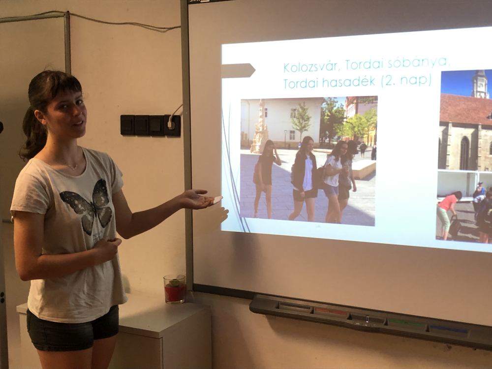 A tanulók fényképek segítségével idézték fel az eseményeket, az erdélyi kirándulás állomásait. Beszélgettünk a külhoni magyarságról. Kicsit rendszereztük az erdélyi magyarsággal kapcsolatos ismereteinek, felelevenítettük az idegenvezetőtől hallott érdekességeket. A fényképek nézegetése során sok emlék jutott az eszükbe, jó volt megtapasztalni, mennyi mindenre emlékeztek! Felismerték a helyszíneket, nevezetességeket, településeket, és az erdélyi magyar közösségekkel való találkozás élményét.
