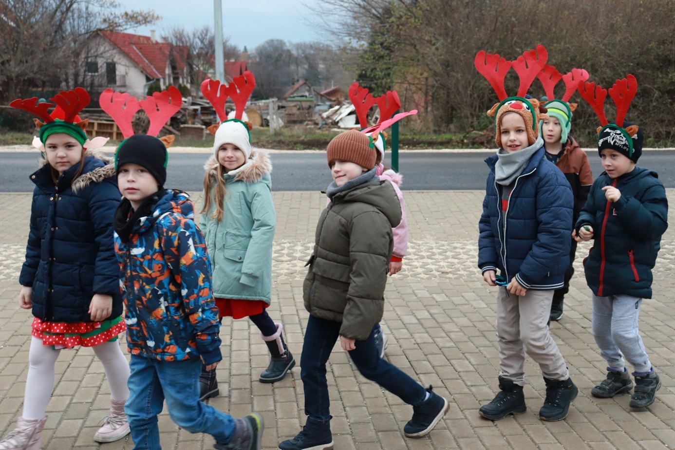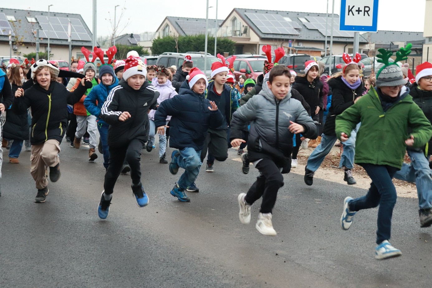 2025. december 5-én ismét megtelt élettel és jókedvvel iskolánk udvara: megrendeztük a hagyományos Rénszarvasfutást, amelyen az alsó tagozat diákjai vettek részt. A gyerekek évfolyamonként sorakoztak fel a rajthoz, és már az első pillanattól kezdve érezhető volt a felszabadult, ünnepi hangulat. A futók nagy része Mikulás-sapkával a fején érkezett, sok sapka és pulóver világított, mások rénszarvas agancsot vagy mókás, karácsonyi mintás pólót viseltek — igazi téli kavalkád alakult ki.